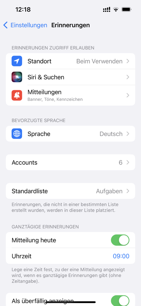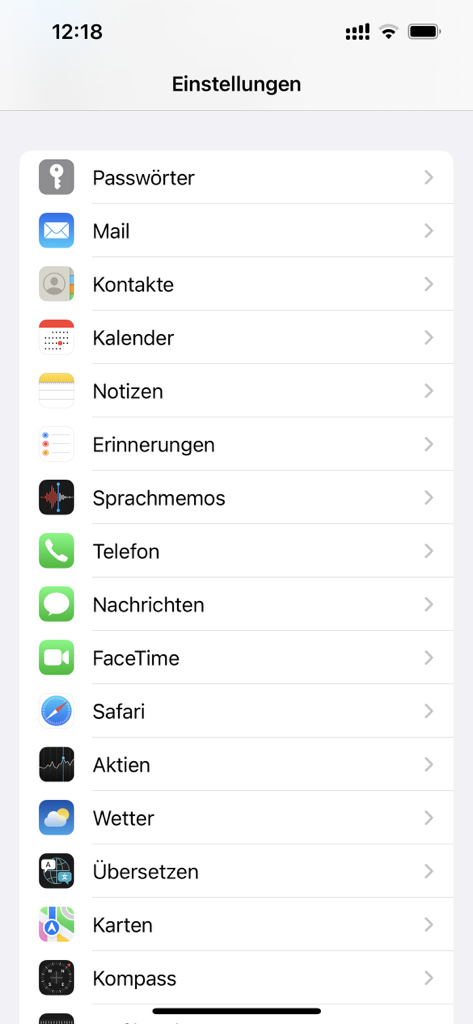 In den Einstellungen deines iPhone findest du eine Liste deiner Anwendungen. Im fünften Abschnitt findest du den Punkt Erinnerungen.