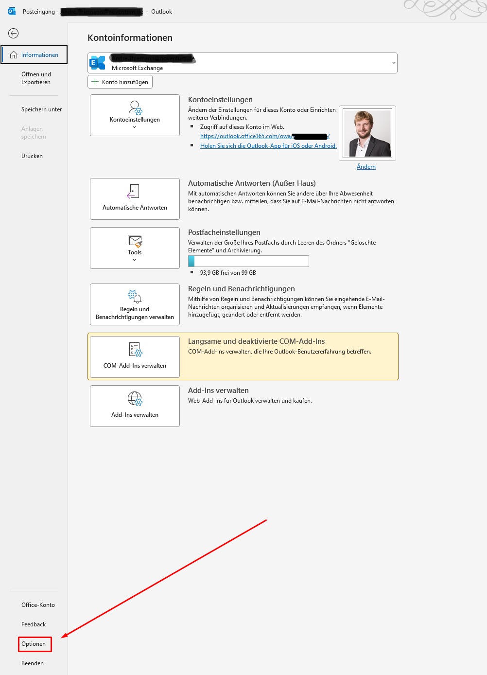 - Ganz unten Links auf den Menüpunkt „Optionen“