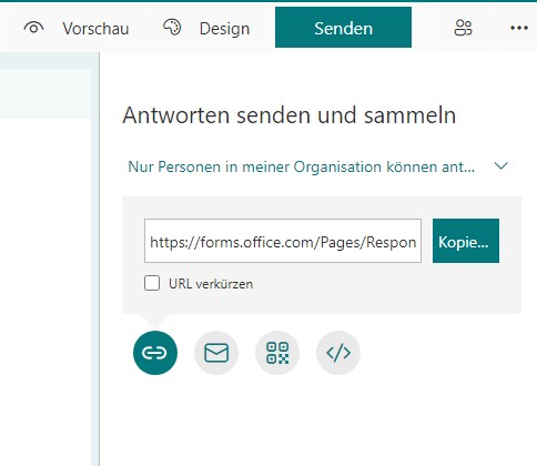 Möchten Sie einen langen Link verbreiten, einen QR-Code, HTML-Code zum einbetten oder eine Mail-Vorlage direkt in Outlook öffnen?